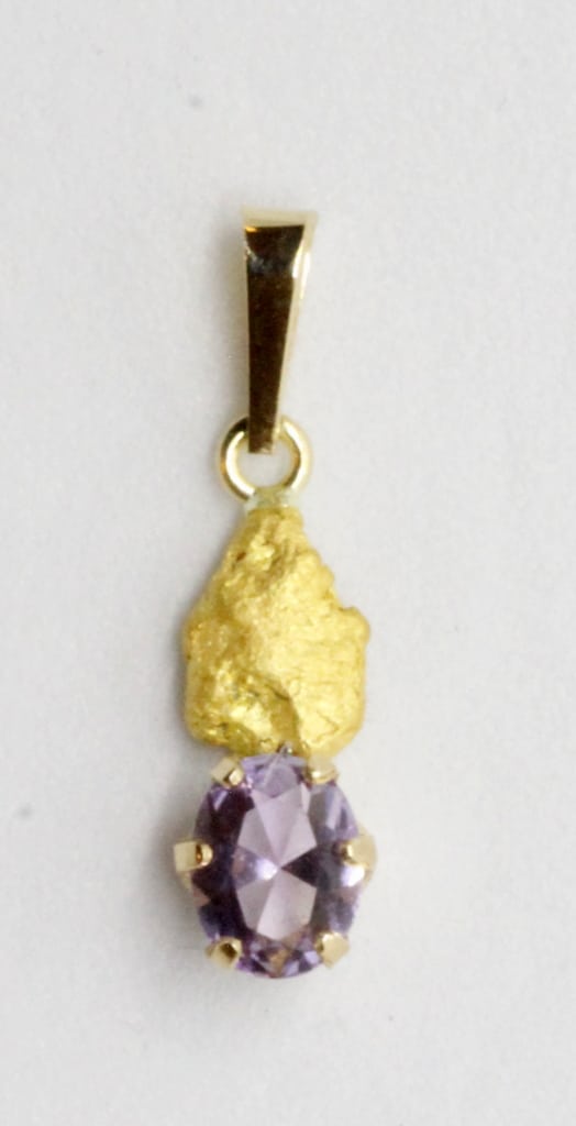 Ametisti-kultahippuriipus Lemmenjokikoru hippu 6mm Alhonen. Ametisti-kultahippuriipus tekijä Alhonen Lemmenjokikoru kultahippu