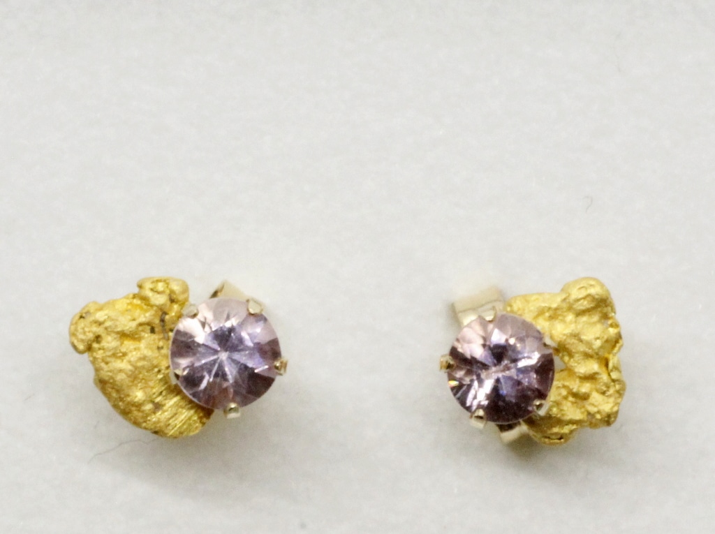 Ametistikorvanapit kultahippu 6mm Lemmenjokikoru Alhonen. Kultahippu korvakorut (pari) aito Lemmenjoki kultahippu ja Luosto Ametisti.