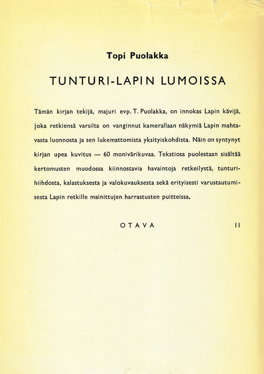 Tunturi-Kapin lumoissa; Puolakka Topi