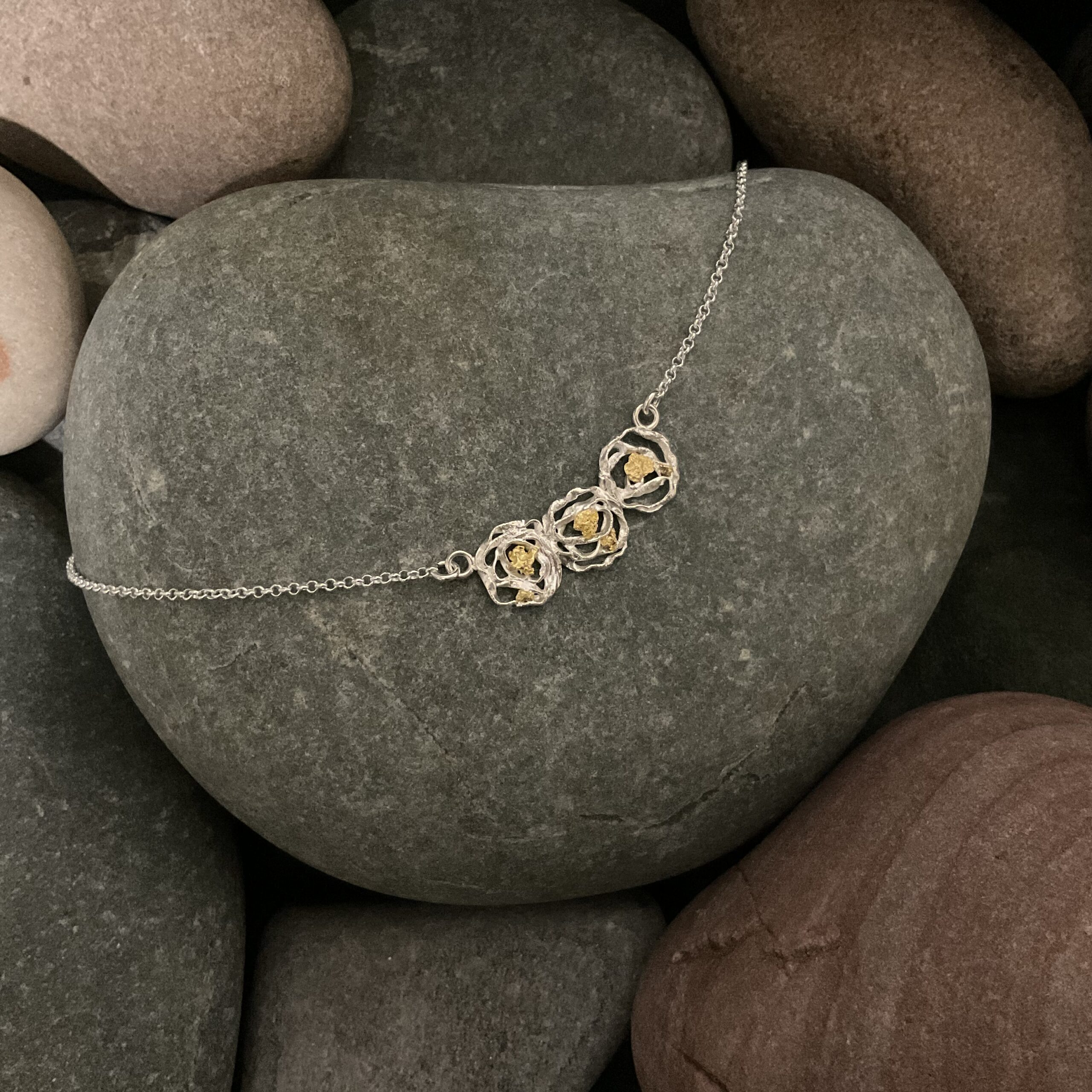 Kipinä Kaulakoru kultahipuilla Hopeija-design Inari