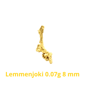 Kultahippu 0.07g 8mm Lemmenjoki Arctic Gold nugget Lemmenjoki kulta-alueelta. Hieno pikku Kultahippu 0.07g Lemmenjoki Arctic Gold nugget monimuotoinen kultahippu, Arctic Gold nugget.