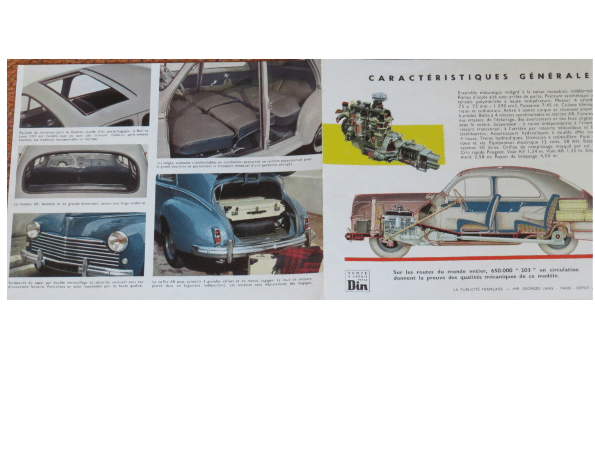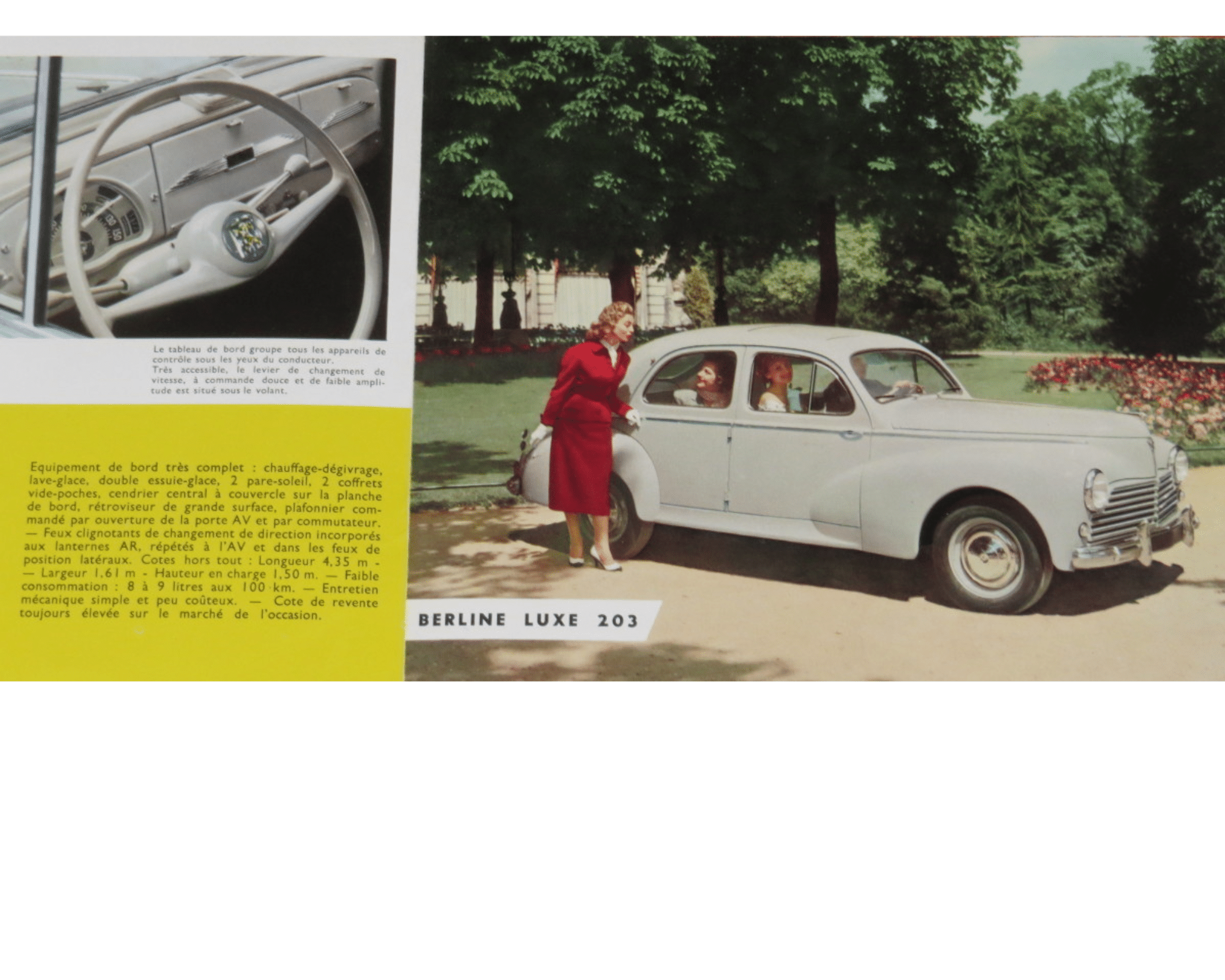 Peugeot 203 1958 – myyntiesite, hieno x sivuinen esite, koko A4 vaaka, ranskankielinen